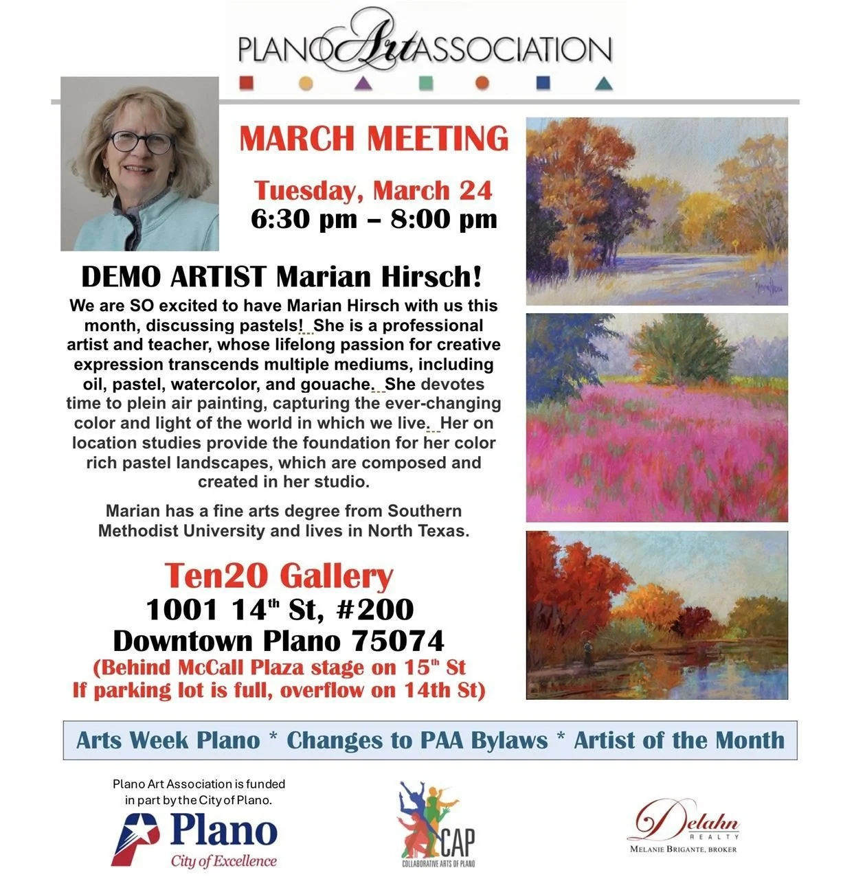 March meeting highlights: Arts Week Plano, Changes to PAA bylaws, Artist of the Month.